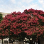 Southern Living writes “Audacious spikes of pink, purple, white, and red flowers crown its sculptural branches for months in summer. In fall, leaves turn a brilliant red or orange, and its peeling bark brings winter interest. Crepe myrtles are found in many shapes and sizes, but their arching branches make them a mainstay for framing many a courtyard. The tree loves heat and humidity, tolerates drought, and grows quickly. Unlike the azalea, camellia, and gardenia, which pine for acid soil, crepe myrtle flourishes just about everywhere. No wonder it ranks as the South’s most popular (and coveted) ornamental tree.”