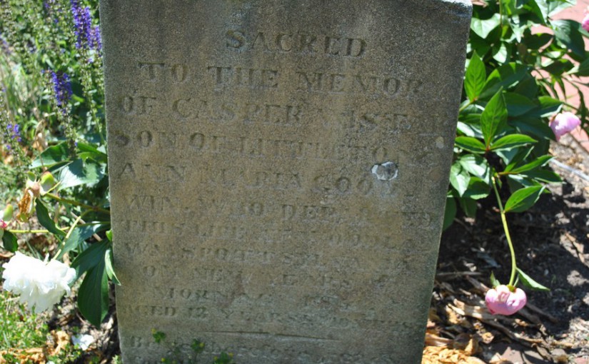Casper GoodwinSacred to the memory of Casper Wister, son of Littleton and Ann Maria Goodwin, who departed this life at Woodlawn, Spotsylvania County, on New Year’s morning, 1851, aged 13 years and 5 months. Be ye therefore ready For the son of man cometh at an hour That ye think not.