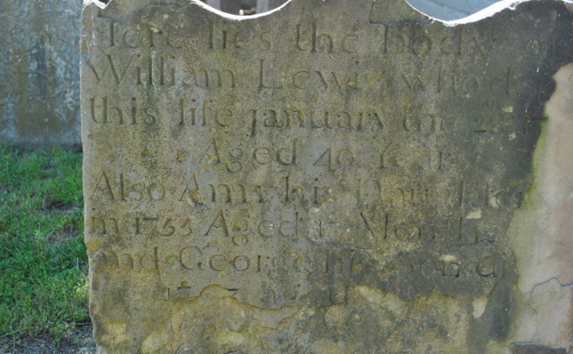 William Lewis of Fredericksburg VA was born in 1723, probably in Essex Co VA. William married Sarah Branham b. c. 1724 Richmond Co VA in about 1745. Evidence for their marriage comes from Sarah’s will which was witnessed by her brother, Daniel Branham, and her brother-in-law, Benjamin Burbridge.